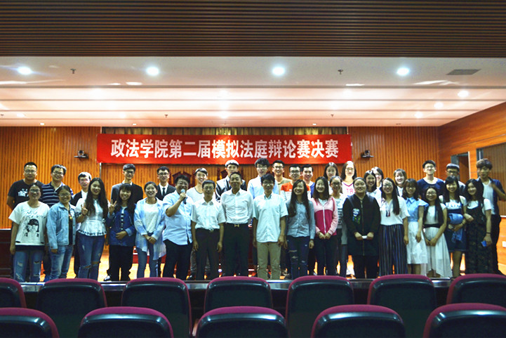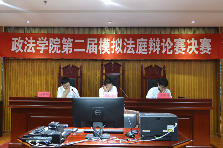 为提升法学专业员工的法律专业素养,将课堂理论与案件实践有机结合,政体育平台官网法学社于6月6日下午18:30在文科楼模拟法庭成功举办了以“明鉴法槌”为主题的第二届政体育平台官网模拟法庭竞赛决赛。公司法律系赵江水老师、马卫军老师、马浩丹老师受邀出席并担任合议庭评审员。2016级法学专业全体员工观摩学习了比赛。