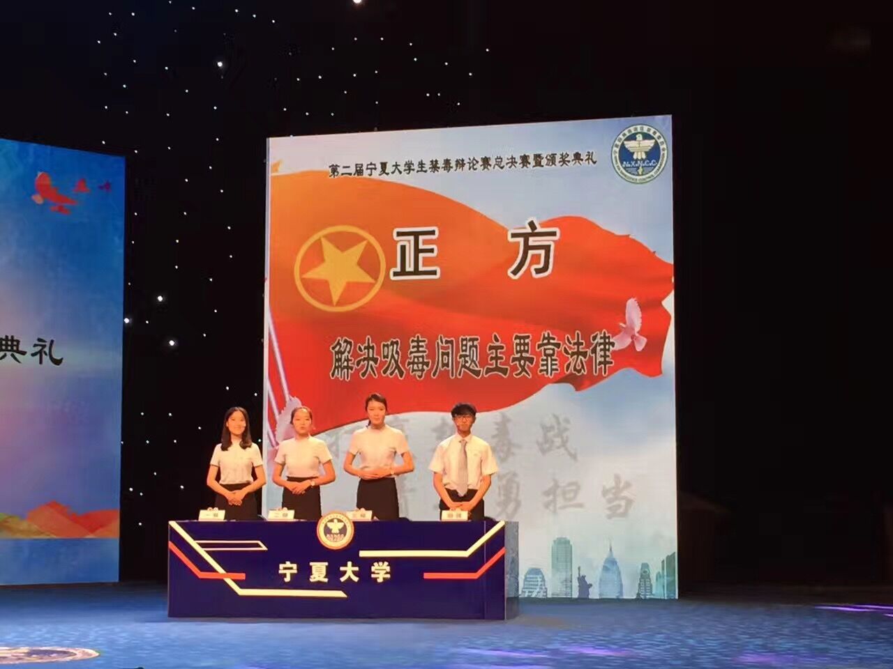 打赢禁毒战,青年勇担当。为促使全区青少年特别是在校老员工进一步加强识毒、防毒、拒毒意识和能力。自治区团委、自治区禁毒办、自治区教育厅和自治区学联联合举办2017年全区老员工禁毒辩论赛活动。活动对象为区内17所高校。在体育平台官网校团委的组织领导下,政体育平台官网由法学系主任张弛老师担任指导老师,带领公司六位优秀辩手代表体育平台官网参加了本次比赛,其中五位辩手来自政体育平台官网。