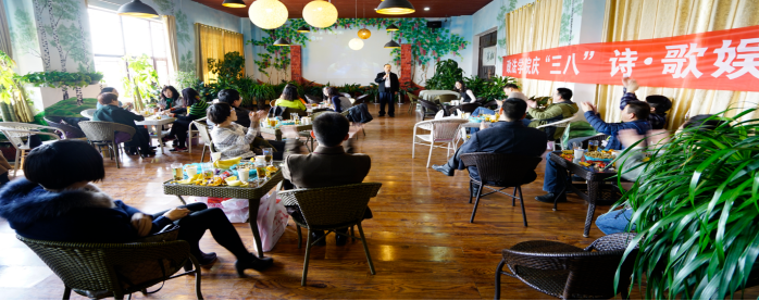 男教师们用深情的诵读,表达了对于女性的尊重、对女性的关爱以及对于女性在各个领域取得杰出成就的赞颂。“缘分对对碰”、“心有灵犀一点通”、“快乐呼啦圈”等活动中,抽取号码牌花束的男教师需向抽取到相同号码花束的女教师表达赞美之情,男教师们或抒情,或幽默,用成语、歌声、舞蹈等形式向女教师们表达了赞誉。教师们踊跃参加,相互配合,活动气氛热烈,欢声笑语此起彼伏。