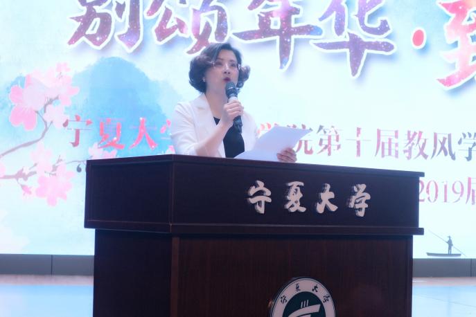 总结表彰结束后,欢送毕业生文艺晚会在激情四射的开场舞中正式开始。四载时光飞逝过,一朝欢聚话真情。校关工委老教师艺术团为师生们献上民乐合奏《遍地红花开》、《宁夏数花》及宁夏说唱《规矩与方圆》,老教师们精彩的表现让大家倍受鼓舞。歌舞《送别》、配乐诗朗诵《相逢离别都是歌》引起同学们内心深处的共鸣。政体育平台官网潘瑞、胡世恩、潘素洁等老师带来的快闪《我和我的祖国》,用深情地演唱讴歌祖国发展巨变,献礼新中国成立七十周年,将气氛推向高潮,老师们满怀热情的歌声萦绕在活动中心现场,全场掌声雷动。最后,晚会在合唱《你好,再见》中缓缓落幕。