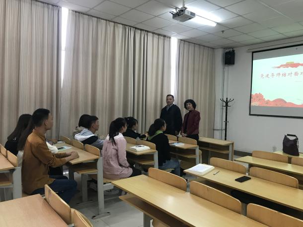 各位党员教师首先对2019级新生来到政体育平台官网表达了祝贺和感谢,介绍了思想政治教育专业的培养目标、课程设置、团队力量、科研成果等基本情况,使新生对所读专业有了更深入的了解。随后,对员工如何充实地度过老员工活、党员应有的思想觉悟、如何学好专业知识、校园文化特色活动育人功能、老员工创新创业科研项目的参与等问题作了详尽解答,并对同学们提出了殷切期望。