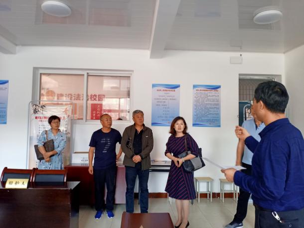 在石嘴山市教育局李科长的陪同下,师生们到活动开展的五个会场进行实地考察。第一站为主会场石嘴山市九中,马旭董事长亲自参加了启动仪式的筹备沟通会,大家就人员、场地、物品配置、模拟法庭、多功能厅相关设备等一一梳理查看,确保活动有条不紊地开展。