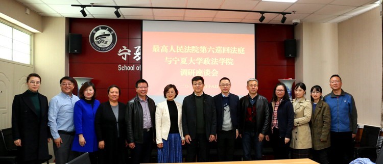 座谈会后,潘瑞陪同第六巡回法庭的法官们一同参观了政体育平台官网模拟法庭、MPA案例教室等法律诊所,与会人员合影留念。