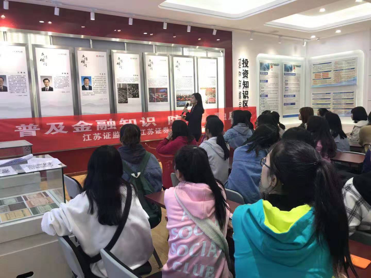 证券所现场教育活动主要分为四个环节,一是现场观摩教学。证券所李老师分别向同学们展示和讲解了所内的历史进展区、投资知识区以及风险防范区;二是证券专业知识讲授。证券所陈老师为同学们详细讲解了证券所的历史发展;三是有奖知识抢答。同学们运用课本相关理论知识和现场参观所学积极抢答,参与热情高昂,现场互动热烈;四是增强风险防范意识。李静主任从证券交易的家庭风险以及证券投资的个人风险两方面强化了员工们的风险意识。