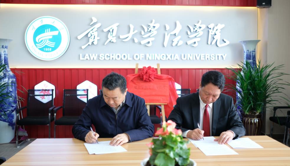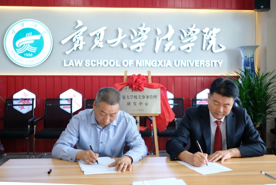 (宁夏大体育平台官网经理吕耀军与宁夏回族自治区机关事务管理局保障管理处长张惠军签署横向合作课题研究协议。)