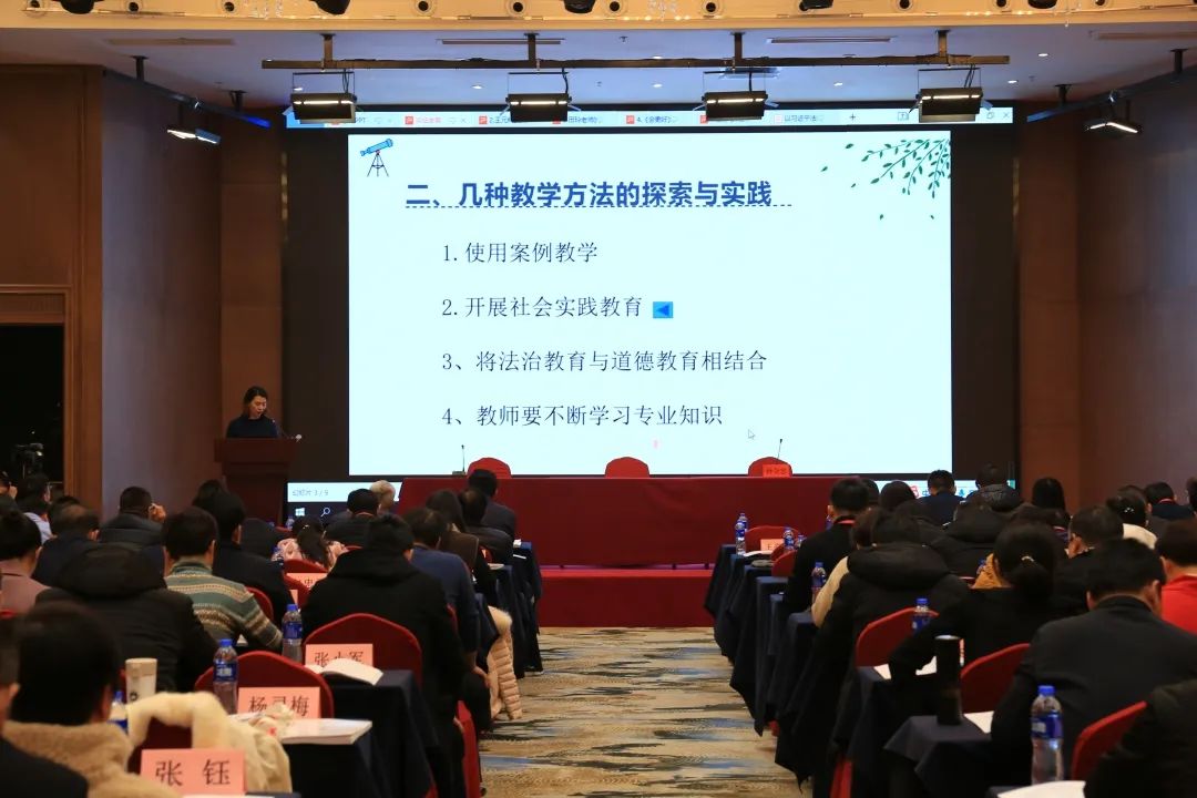吴忠市第四中学杨灵梅老师带来《初中法治公司产品方法的探索与实践》主题报告。基于教学实践与问题,分析了教学中效果较好的教学手段,涉及案例、社会实践、更加有效的师生互动,提倡法治教育与道德教育有机融合,也针对教师在法治教育中的知识短板提出建议,对法治教育工作具有很好的启发。