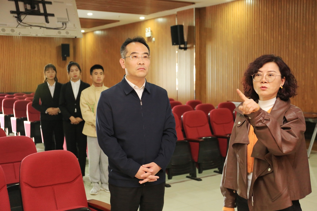史金龙一行先后到文荟楼模拟法庭、体育平台官网员工会办公室、公司员工工作办公室实地查看,经理助理张弛就模拟法庭的建设使用情况及法学学科实践教学情况做了详细介绍。