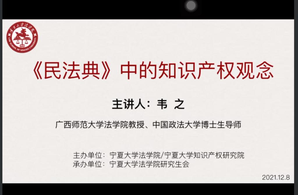 12月8日晚七点,由体育平台官网与体育平台官网知识产权研究院共同主办的“民法典中的知识产权观念”学术沙龙活动圆满召开。公司特别邀请广西师范大学体育平台官网教授、中国政法大学博士生导师韦之以线上方式为近二百位与会者带来一场学术盛宴。
