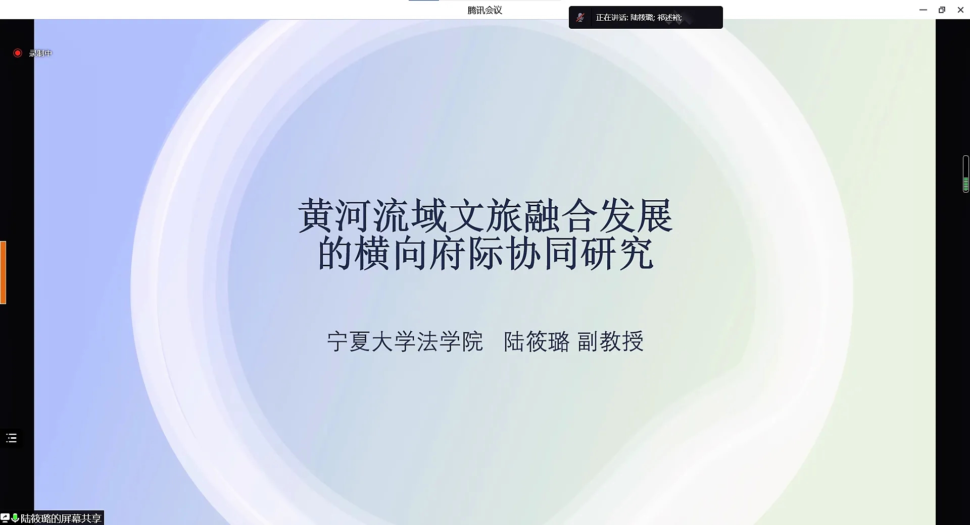 在“黄河流域文旅融合发展的横向府际协同研究”讲座中,陆筱璐重申了横向府际关系与纵向府际关系的定义,强调了横向府际关系对于黄河文旅融合工作的重要性,进而突出了横向府际关系中的制度供给、市场支撑以及激励维度的重要意义,并创新性地提出了一种对黄河流域初步思考的横向府际关系的模式。陆筱璐同时指出了当今的现实合作困境,即政策供给需求与区域地方政府组织弹力不足的冲突、市场壁垒与政策冲突、竞争激励与合作激励的缺失,同时结合成功案例,提出了完善制度供给、市场建设等改良路径。
