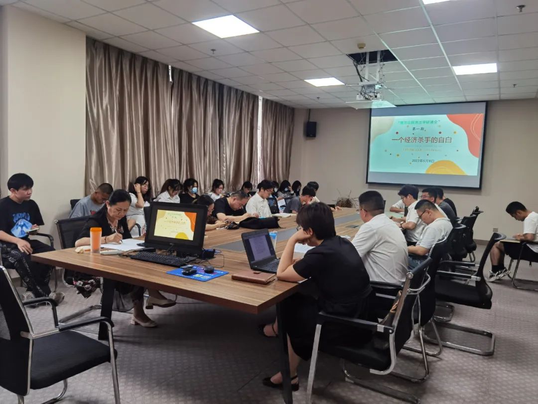 书籍是一道厚重的门,垂青着每一位敲门者。在那散开的门扉里,是一口淘不完的井,是一座掘不尽的矿。为拓展阅读知识面,加强学术氛围建设,6月9日晚,由法律系经济法教研室主办的第一期贺兰山经济法学研读会活动在文荟楼804法律系办公室开展。此次活动由靳永雄副经理担任主持人,法律系主任朱蓓予作为特邀嘉宾参会,刘芳、张驰、曹慈义、段向坤担任点评人,2020级本科生参加。