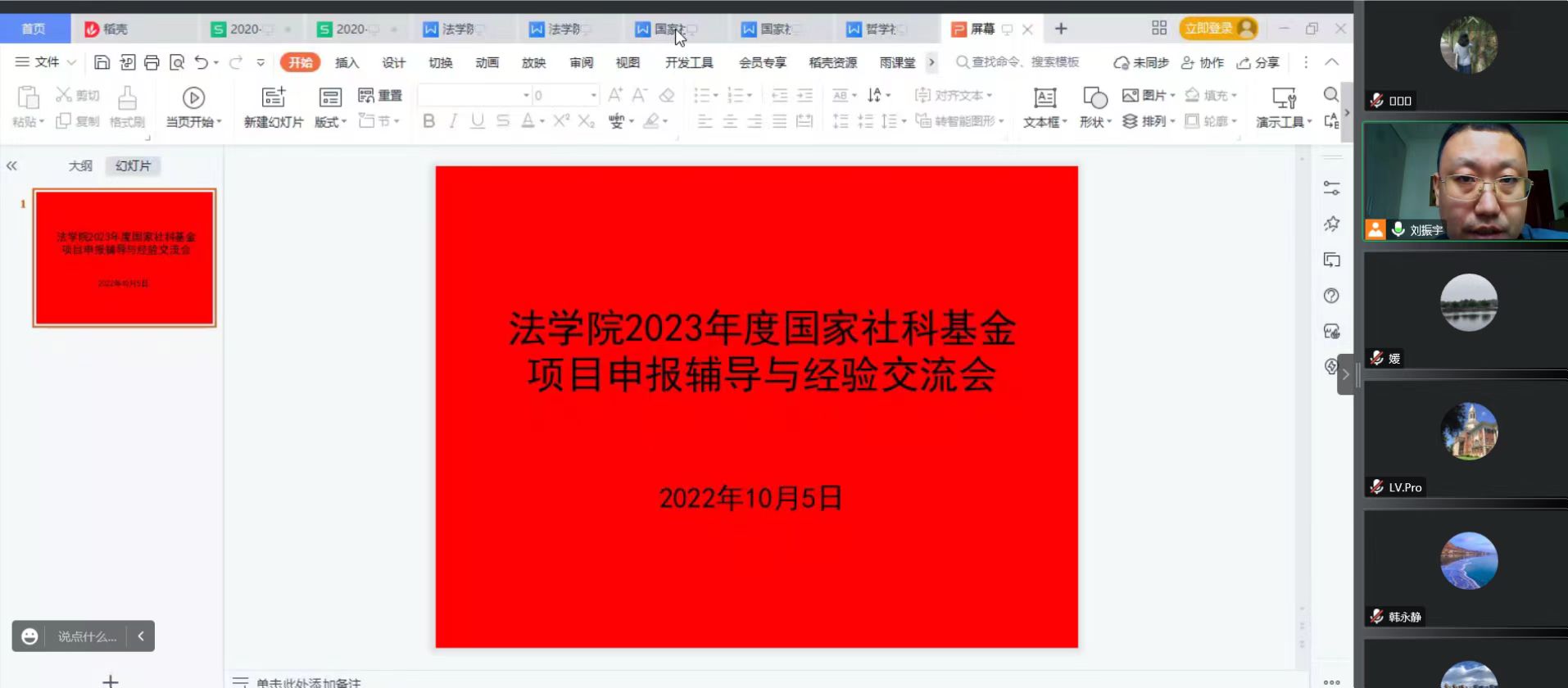 会议第一阶段,刘振宇详细介绍了《2023年度国家社科基金项目申报工作计划》,对公司近三年科研项目情况进行了细致分析,并解读了《国家社会科学基金管理办法》《国家社会科学基金项目资金管理办法》。通过讲解,各位老师进一步明晰了项目申报进度安排,并对国家社科基金项目有了更加深入的了解。