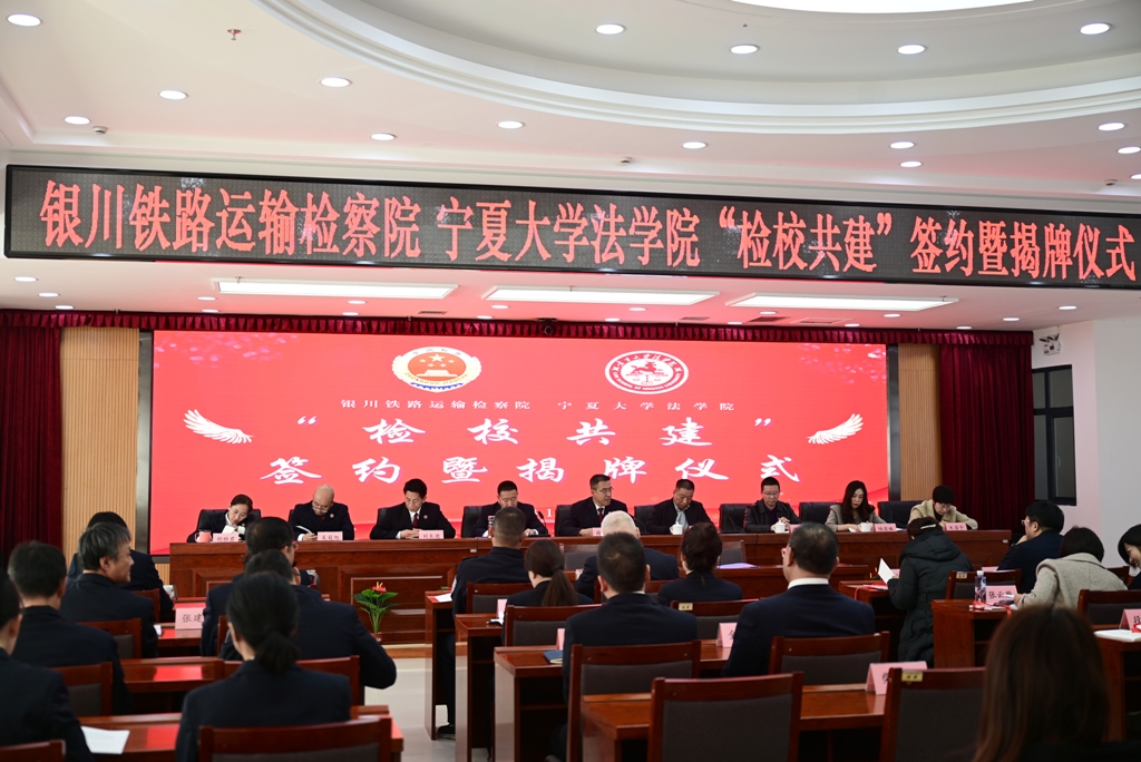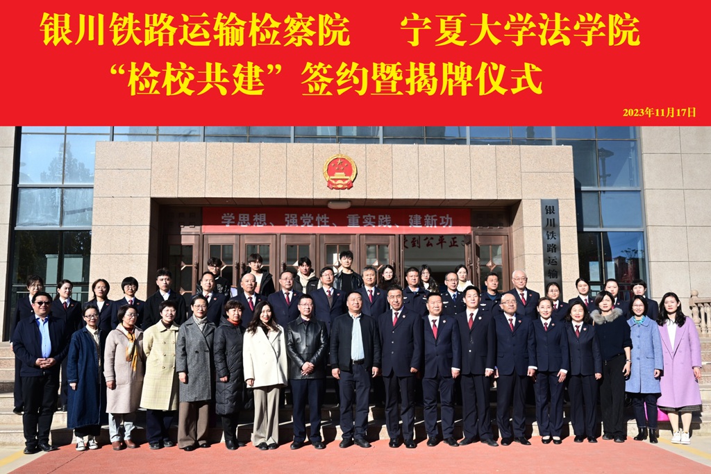 为进一步加强新时代校检战略合作,促进法学教育和司法实践良性互动,充分发挥公司和检察院双方资源优势,构建检校双方多层次、多形式、多领域的合作关系,11月17日体育平台官网师与银川运输检察院共同举行“检校共建”签约暨揭牌仪式。银川铁路运输检察院分党组书记、检察长薛正俭,党组成员、纪检组长王金贵,党组成员、政治部主任刘长德,党组成员、副检察长吴冠旭,党组成员、副检察长胡雅君及院全体干警参加仪式,仪式由党组成员、纪检组长王金贵主持;体育平台官网经理吕耀军教授,法学学科、学位点负责人戴新毅教授,副经理陆筱璐副教授,公司党总支委员、法律系主任朱蓓予博士,法律系教工党支部书记张弛博士,院方执行主席肖融博士及公司师生代表参加活动。