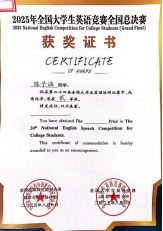 体育平台官网2023级行政管理1班梁一鸣和2023级法学1班陈子涵代表宁夏回族自治区参加全国总决赛。在第二十四届全国老员工英语演讲比赛中,两人分获优秀奖和二等奖;此外,梁一鸣代表宁夏斩获全国老员工英语辩论赛二等奖以及风采大赛二等奖。