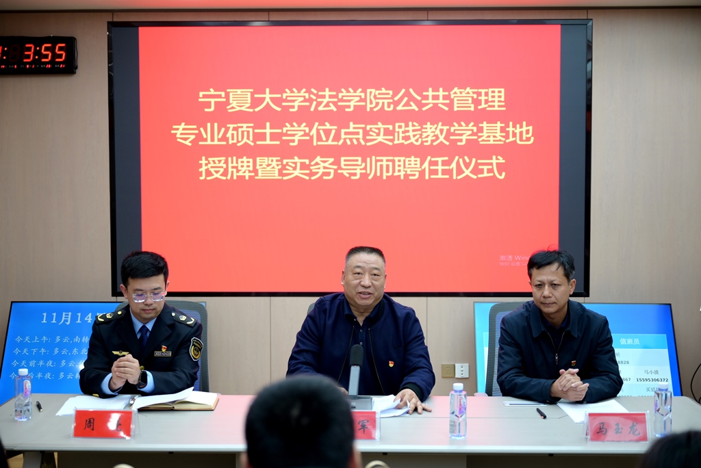 活动伊始,一场简朴而庄重的授牌仪式成为全场焦点。体育平台官网吕耀军经理与同心县应急管理局周亮局长共同为“体育平台官网公共管理专业硕士学位点实践教学基地”揭牌。实践基地的建设增强了MPA学位点与我区应急管理部门等单位的密切合作,形成“政—产—学—研—用”一体化贯通式培养模式,为MPA学员提供了更多稳定的、高水平的校外实践与研究平台。