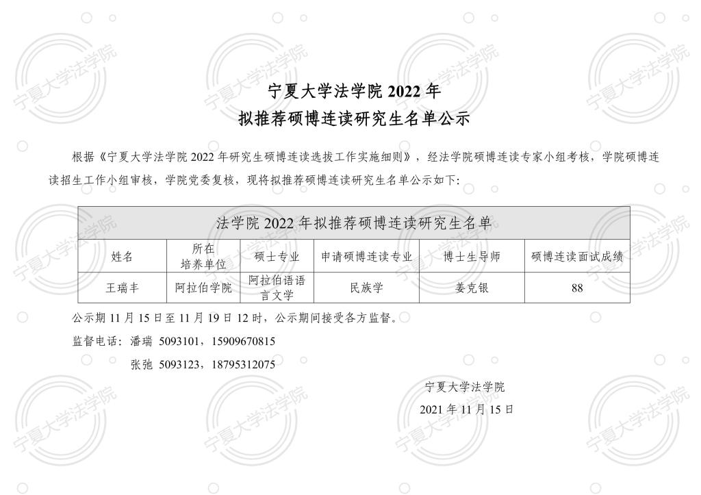 2022年拟推荐硕博连读研究生名单公示