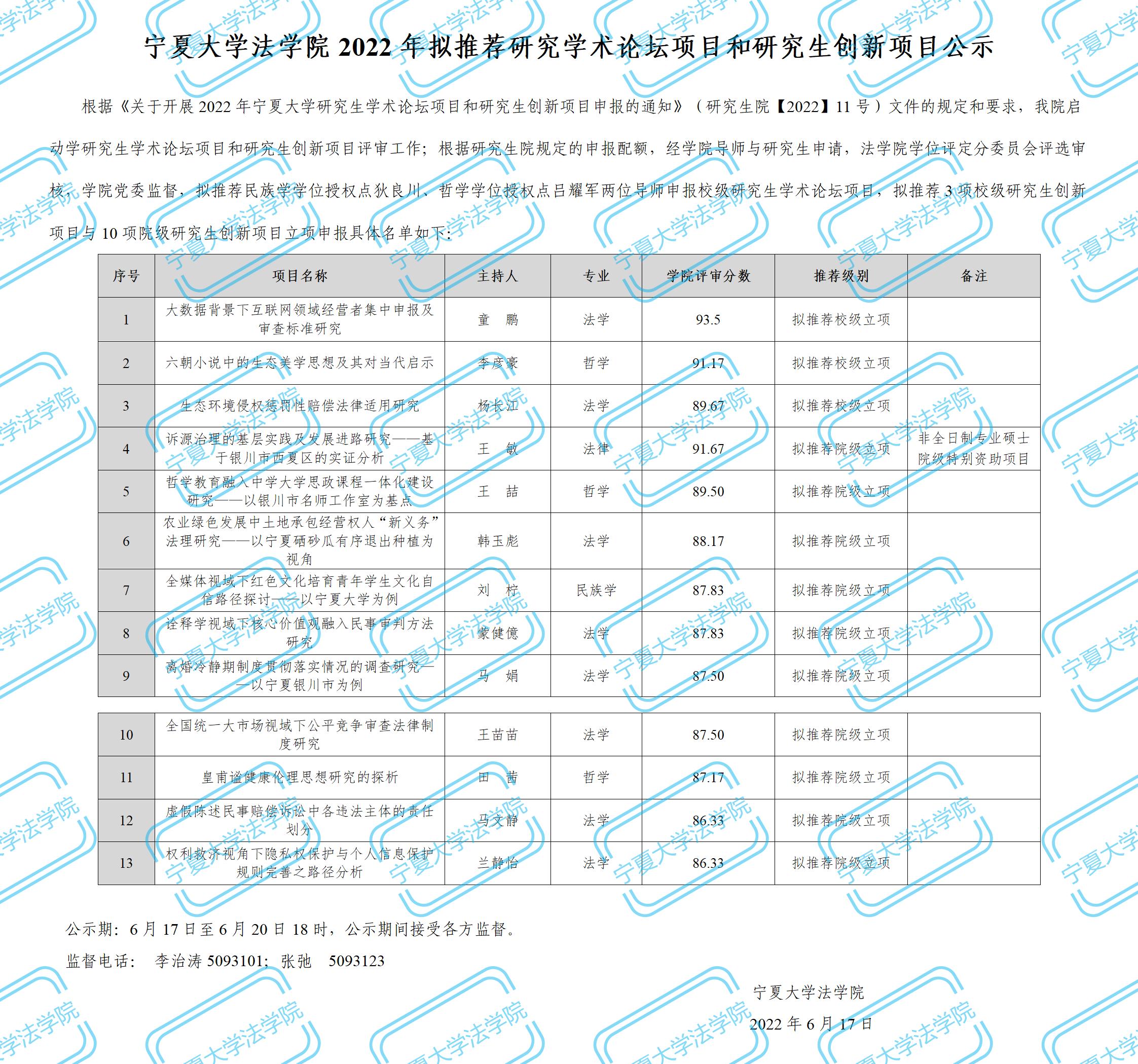 2022年拟推荐研究学术论坛项目和研究生创新项目公示