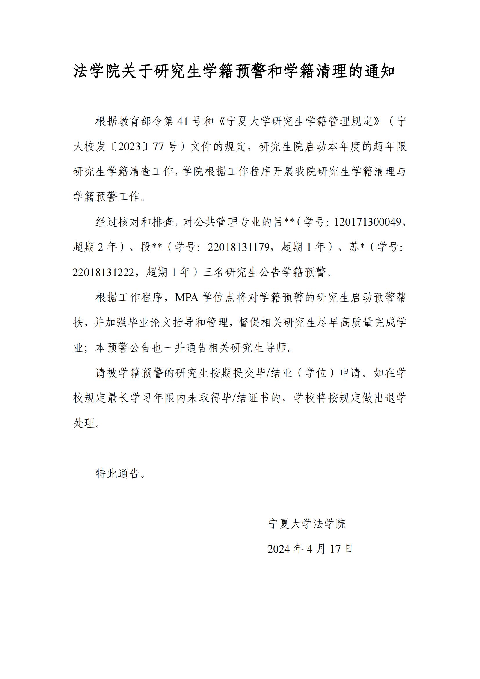 体育平台官网关于研究生学籍预警和学籍清理的通知