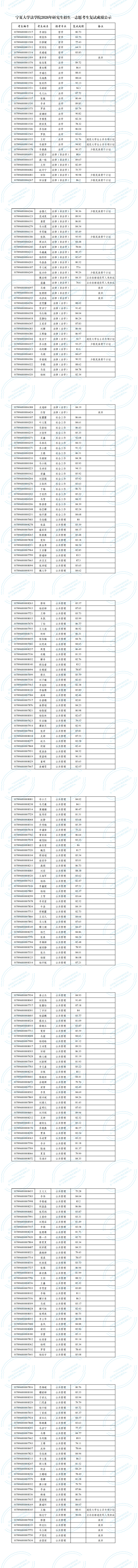 2026年研究生招生一志愿考生复试成绩公示