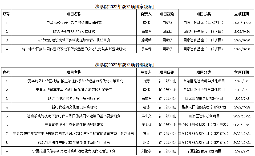 2022年获立项国家级、省部级项目一览