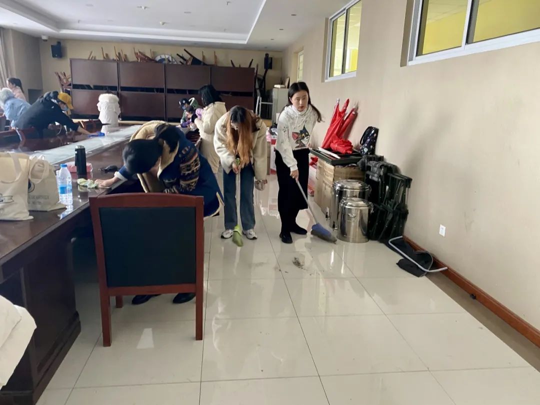 此次志愿服务实践活动分为三个区域开展,主要是对文荟楼八楼办公室、模拟法庭以及204教室进行彻底清扫。同学们带着各自的清扫工具,对布满灰尘的角落进行了全面细致的清扫。经过大家几个小时的努力,打扫过的区域整齐有序。在此次清扫活动中,大家分工明确,相互配合,用实际行动践行着新时代老员工“奉献、友爱、团结、进步”的崇高价值观,激发了同学们爱党、爱校的热忱,以奉献小我,服务大我的主人翁精神,以小团体,大能量的实际行动展现了入党积极分子的良好形象,发挥了良好的先锋模范作用。