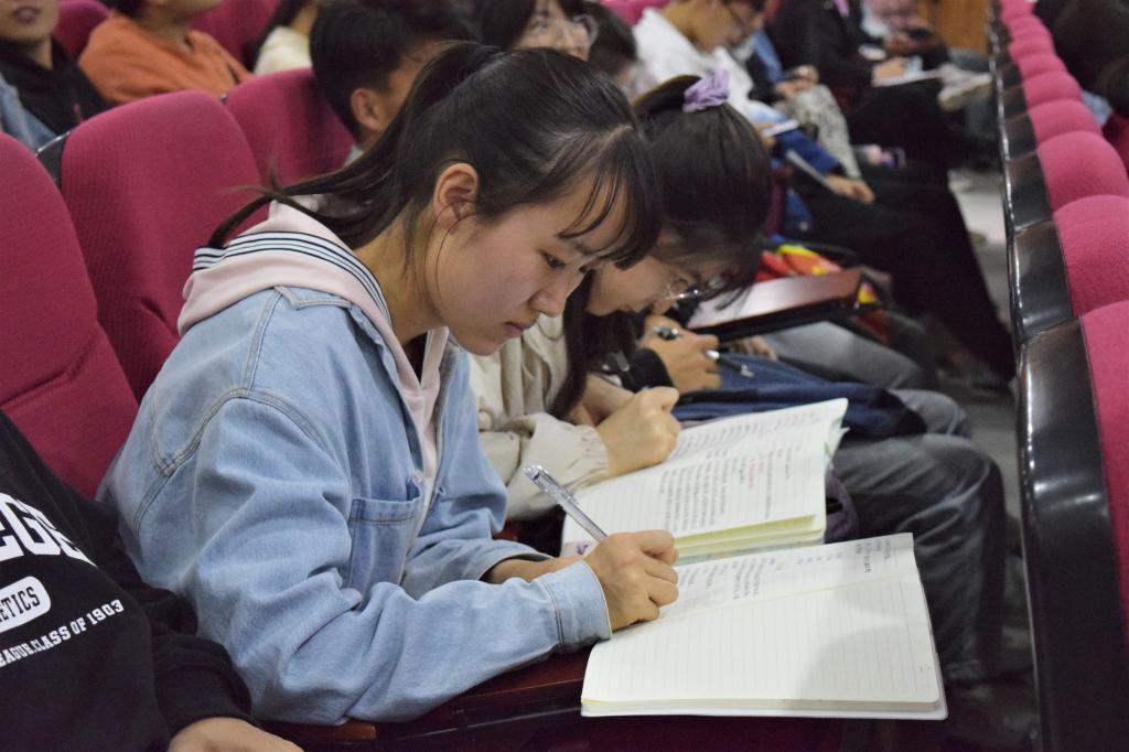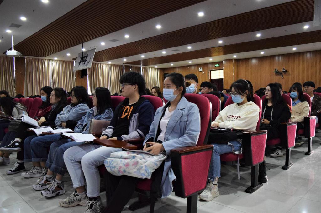 4月28日晚,体育平台官网经理吕耀军在文荟楼模拟法庭作“学习马克思主义五观,增强五个认同,维护民族团结”主题讲座,体育平台官网和食品与葡萄酒公司党员发展对象、入党积极分子及团学骨干到场聆听。