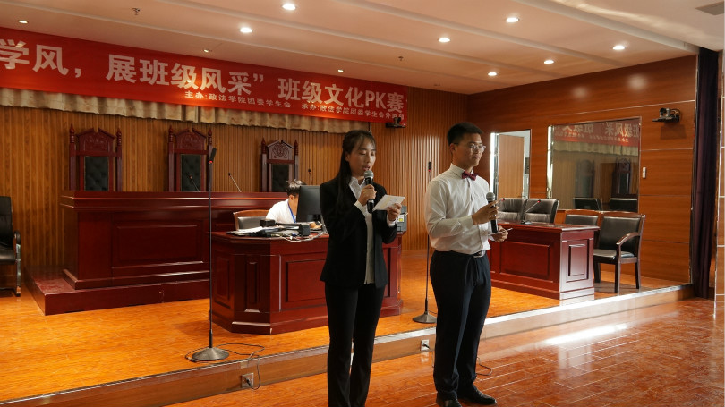 5月23日下午4点,政体育平台官网2018年度“树优良学风,展班级风采”班级文化PK赛在文荟楼模拟法庭成功举办。