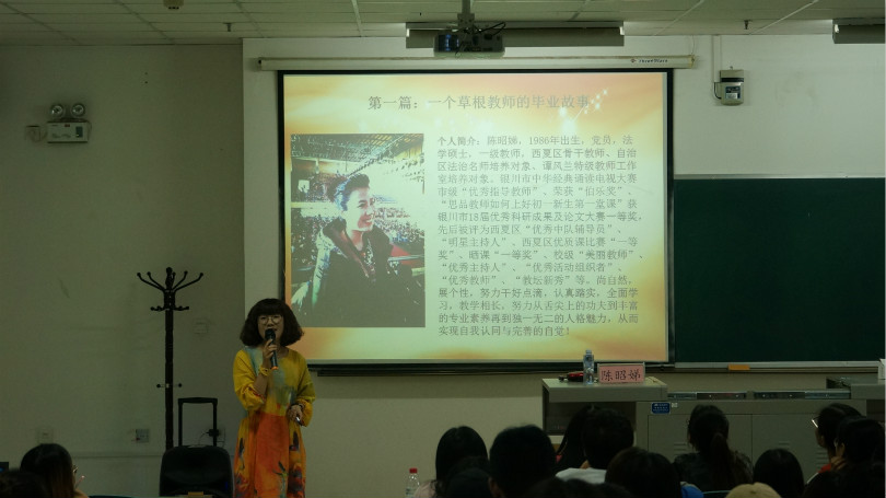 为增强师范生对思想政治教育专业的职业认知,给同学们的职业选择提供可行性指导。5月21日晚上7时,政体育平台官网思想政治教育与哲学系特别邀请了银川市九中陈昭娣老师在贺兰山校区文荟楼232教室作了有关师范生职业选择专题报告,系内教师代表和全体员工到场观摩聆听。
