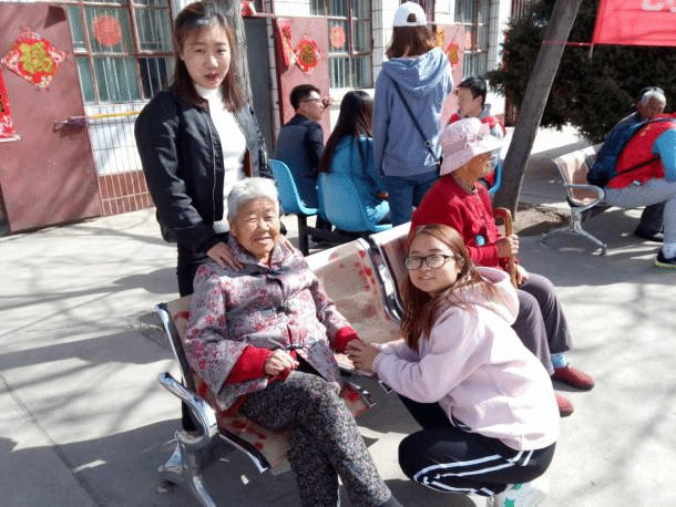 快乐的时光总是短暂的,很快到了老人吃饭的时间,大家在院子里合影留念,临走前老人们还不忘嘱咐志愿者们好好学习,有时间去看他们。