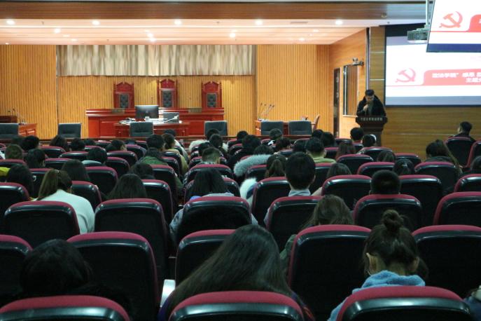 11月26日,政体育平台官网在模拟法庭组织青马班学员学习《新时代爱国主义实施纲要》,2017级员工杨有贵领学,青马班全体学员参加学习。