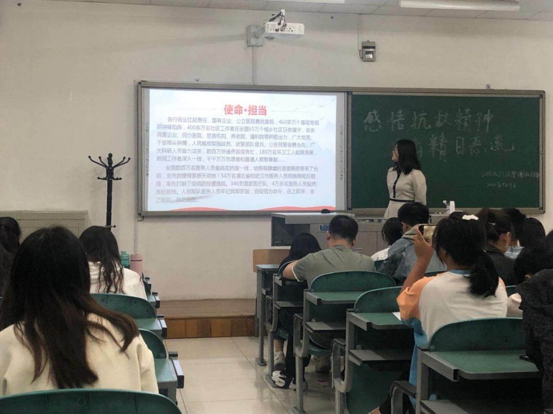 此次主题班会以返校后疫情防控为主旨,主持人分别从同学们返校后的新学期、新生活、讲述战疫“心”故事及开展传染病防控知识普及等方面开展主题班会,强调同学们在疫情防控时期必须要做好日常防护工作,保障个人安全健康并共同维护校园健康环境。会中,同学们积极表达了对于榜样精神的体会,部分同学就自己在假期中的抗疫故事向大家进行了讲述。