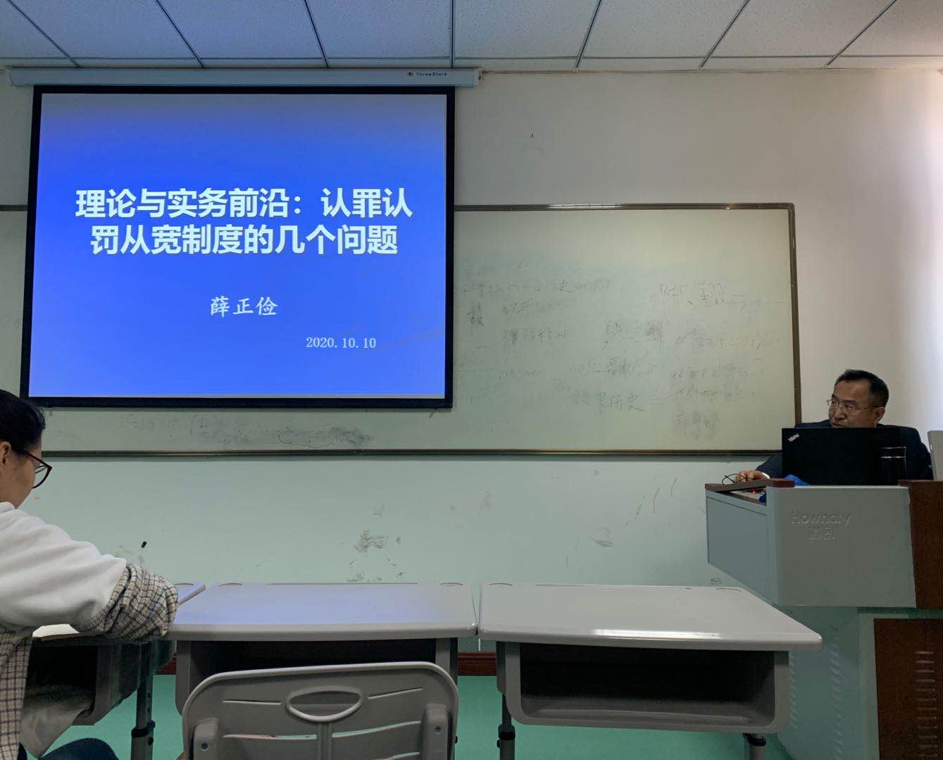 2020年10月10日下午,宁夏回族自治区人民检察院检察官薛正俭受邀来到公司研究生司法实务专题研讨课堂,为2019级诉讼法学学术型硕士研究生讲解了关于认罪认罚从宽制度的相关问题。