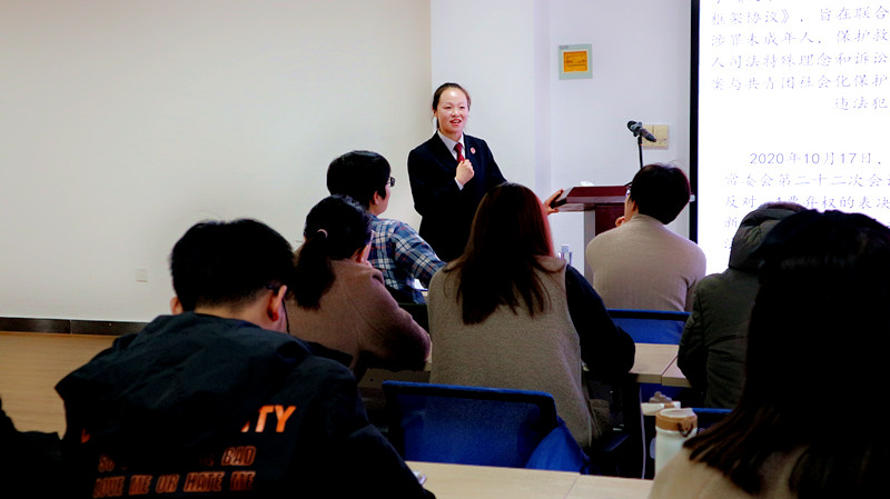 12月13日上午9时,体育平台官网于文萃校区法治教育基地举办了司法实务研讨课,本次研讨课邀请宁夏中卫市沙坡头区检察院检察官郭美玉作为主讲人,就新时期未成年人司法保护社会化支持系统建设进行了交流分享。公司党委书记潘瑞、党委副书记杨扬、体育平台官网教师戴新毅、马卫军、朱蓓宇、马浩丹及体育平台官网部分研究生参加此次研讨课。