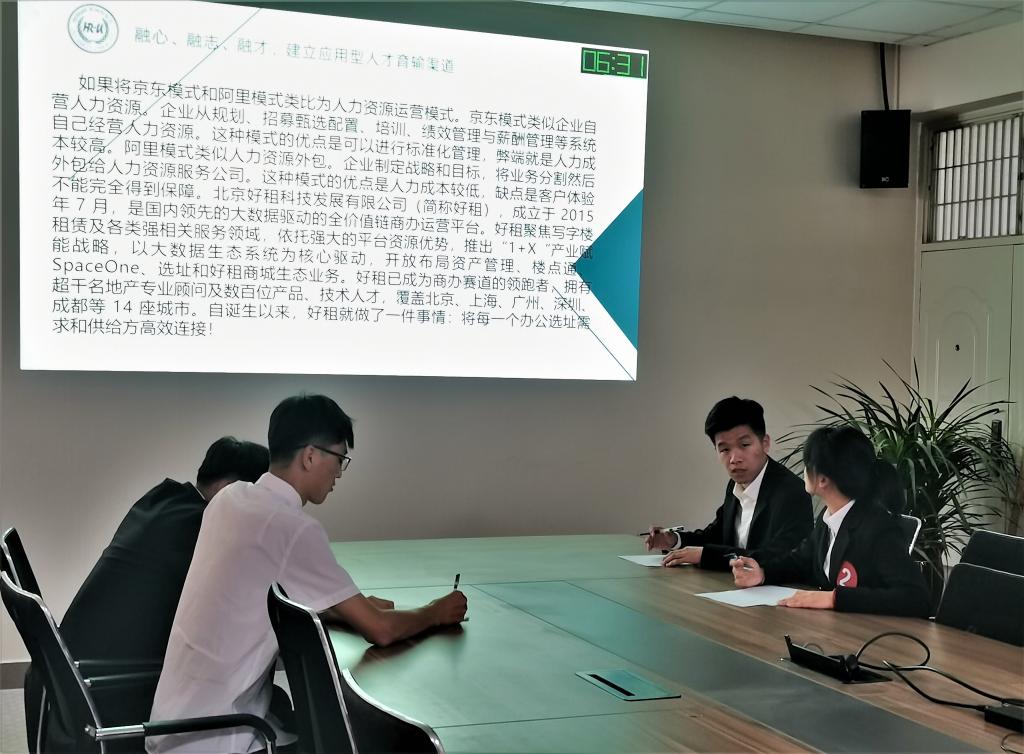 本次大赛设无领导小组讨论、实务设计、案例分析、职场实战四个常规比赛项目。比赛过程中,选手们思维敏捷、条理清晰,将理论与实践相结合,沉着冷静的阐明了应对思路,迅速提出了有效的解决方案。他们的精彩表现给诸位评委留下了深刻的印象。比赛结束后,评委老师对选手们的表现一一进行点评,他们从人力资源管理的专业角度深入探讨、分析员工比赛过程中出现的问题,并给予细致指导。