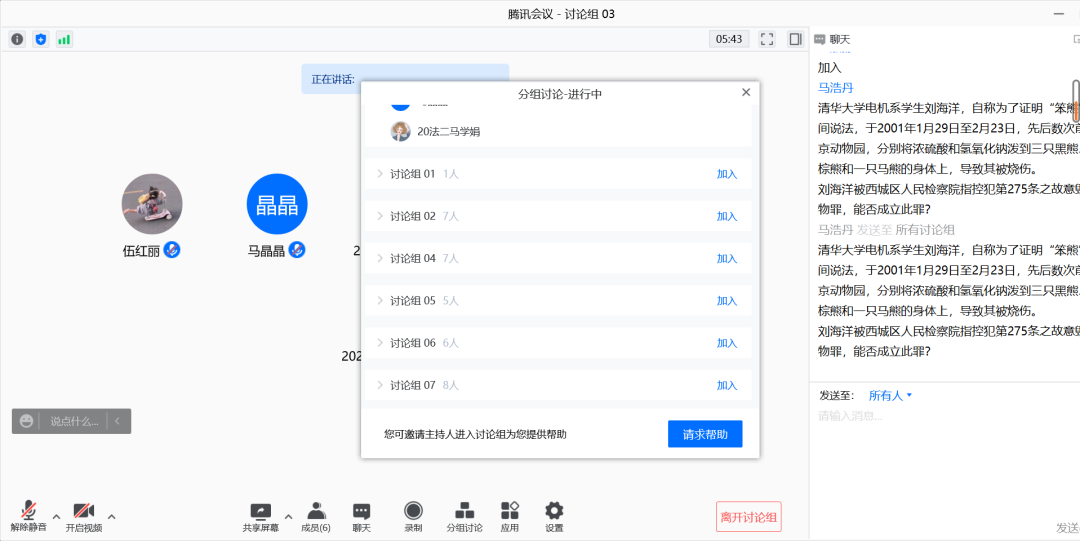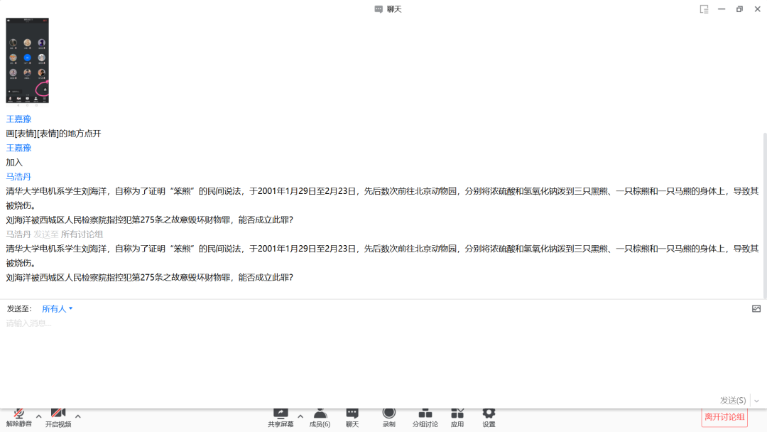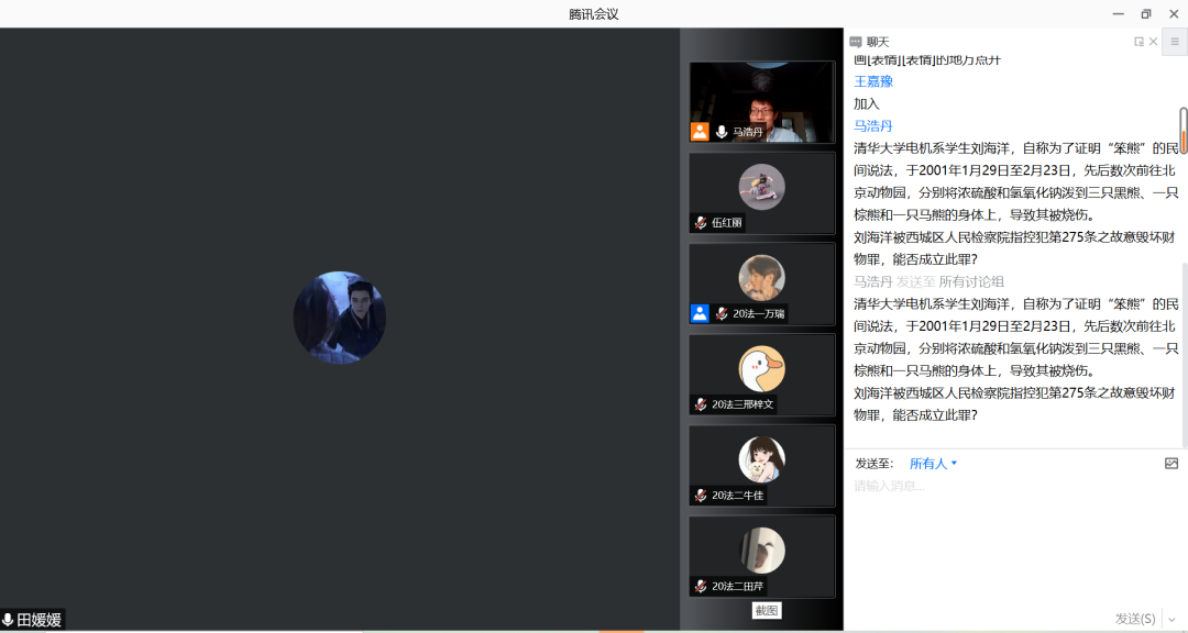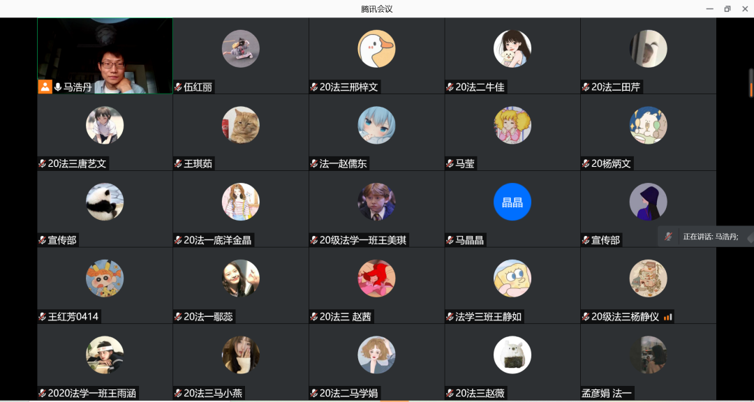 举“案”明理,阅“例”非凡,用法律之眼看世界。为提高线上教学质量,帮助同学们强化法学思维方式。11月5日下午体育平台官网通过虚拟接待室的方式举办线上刑法案例研习活动。本次活动由马浩丹做主讲人,体育平台官网员工工作办公室主任王嘉豫出席研习会,部分2020级本科生参加此次活动。