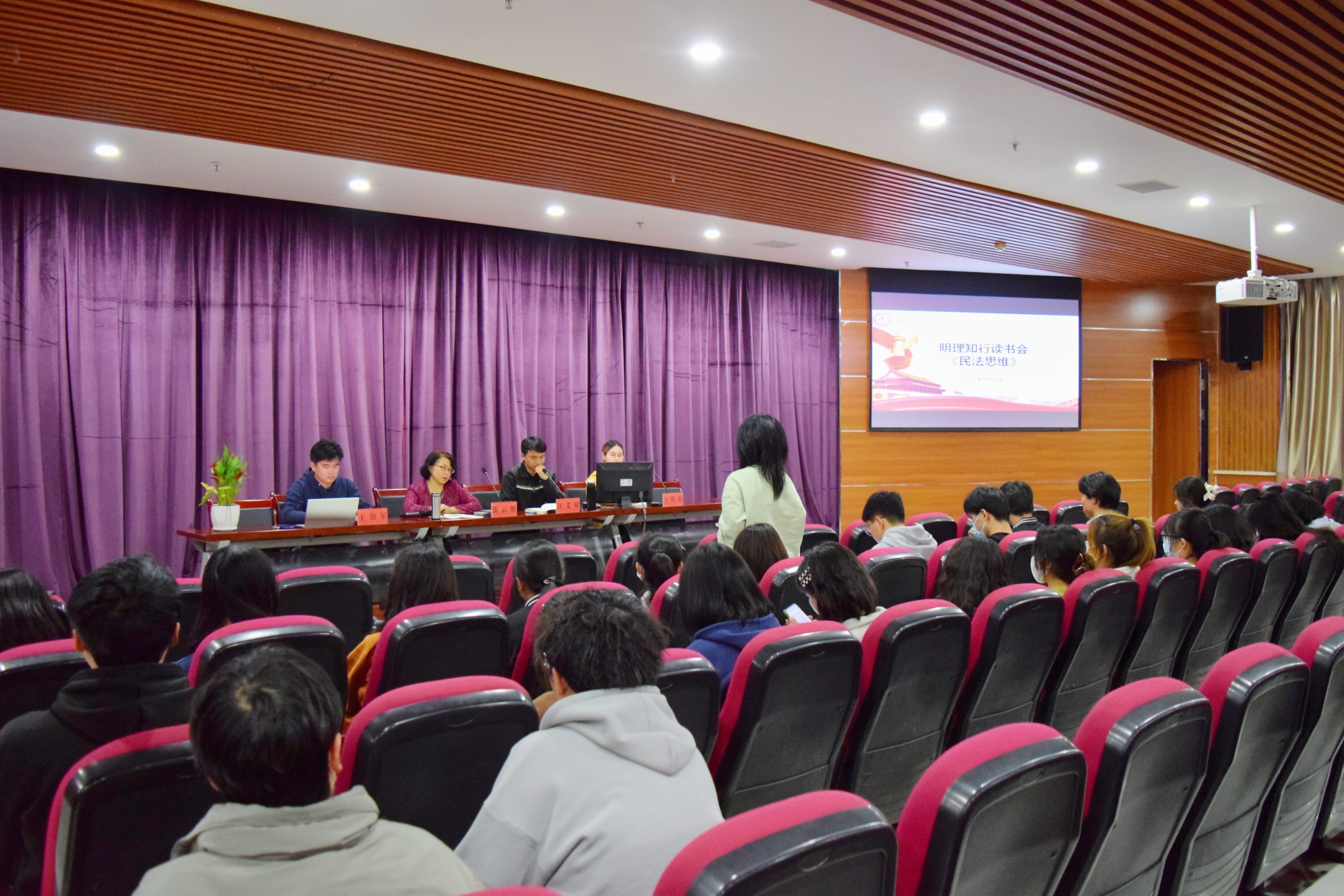 为促进员工对法学知识的深入理解,形成交流互鉴的良好学术氛围。3月11日晚,公司于文荟楼模拟法庭举行明理知行读书分享会,本次分享会主持人为2020级诉讼法专业研究生王艳军,报告人为2020级法学二班本科生王琪茹,与谈人法律系副教授张云雁及2019级民商法学研究生汪义双。2020级法学专业本科生及2021级法学专业研究生参加本次活动。