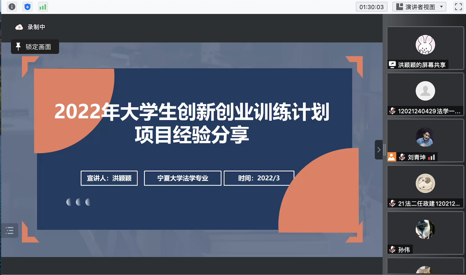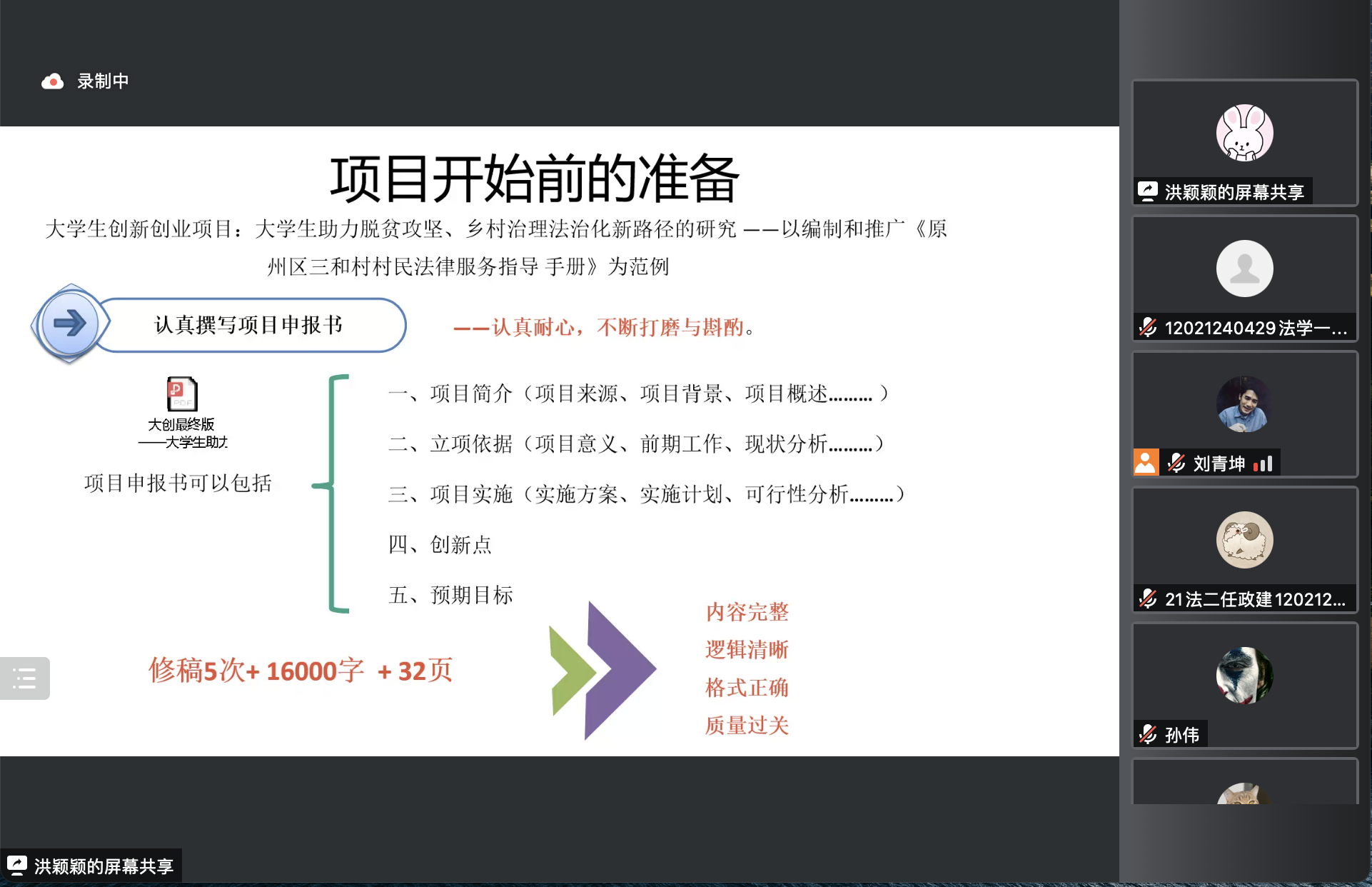 培训中,2018级洪颖颖和2020级战奇两位同学还分享了自己的项目经验与成果,并结合亲身实践经历,提出了积极的建议与意见,为本次参与大创的员工提供了有益的借鉴与参考。