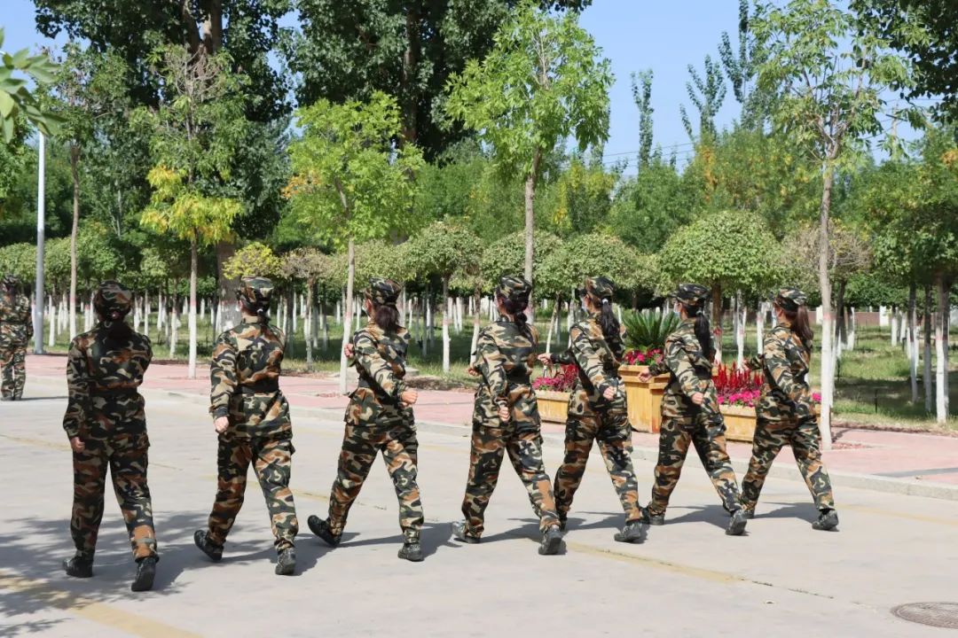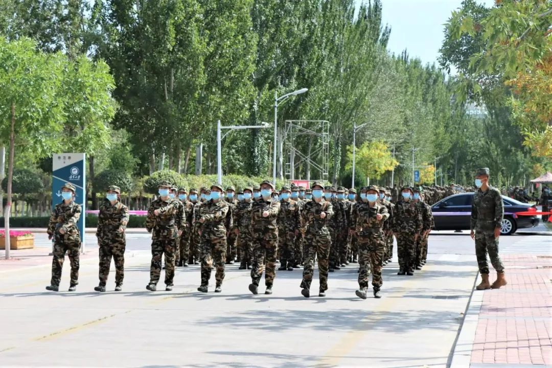 同学们日进日新,每天都有新的收获和进步。在高强度的训练下,身体已渐渐适应节奏,酸痛感减弱,肢体变得更有力量。训练立定、练习跑步,学唱军歌,演练正步走。汗水从脸颊滑落,新奇中夹杂着疲惫,2022级新生们以无声的坚持刻画着稚气而又青春的模样。