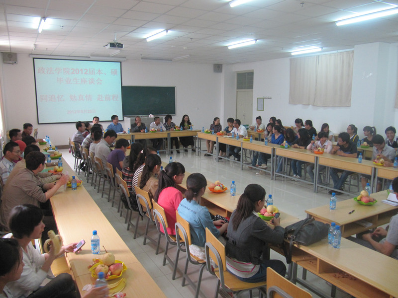 槐柳成阴,又到毕业季,5月23日下午,政体育平台官网“同追忆、勉真情、赴前程”本、硕毕业生座谈会在文科楼418教举行。公司经理潘忠宇、副经理吕耀军、副经理曲正、教科办主任武玲娥、政治系主任潘素洁、行管系主任杨文林、法律系滕明荣教授、员工办公室主任张强以及部分本、硕毕业生参加了座谈会。此次座谈会由公司党总支副书记崔明堂主持。