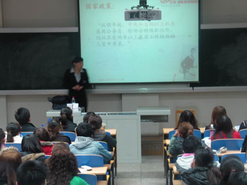 3月16日晚上,由体育平台官网员工处和政体育平台官网联合举办的“2011公务员考试备考指南”专题讲座在体育平台官网C区一教221教室举行。讲座由中国公务员教育时政专家李雪老师讲授,来自公司2008级、2007级及其他兄弟院系的200多名员工到场聆听。