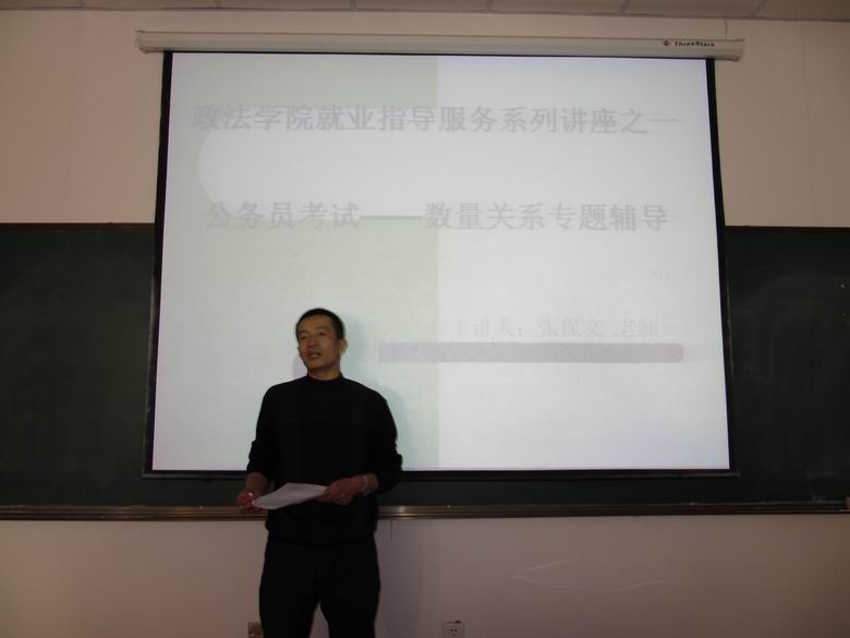 通过公务员考试走上工作岗位是公司毕业生就业的主要途径之一,公务员应试能力培训是公司毕业生就业指导服务工作的重点,2010年国家公务员考试在即,为引导广大考生做好最后阶段的冲刺,针对考生在行政能力测试考试中存在的问题,11月6日至7日,公司特邀请数学计算机公司张保文老师在文科楼111教室开展了相关的公务员应试——数量关系讲座。来自公司及其他兄弟院系80余名员工聆听了讲座。
