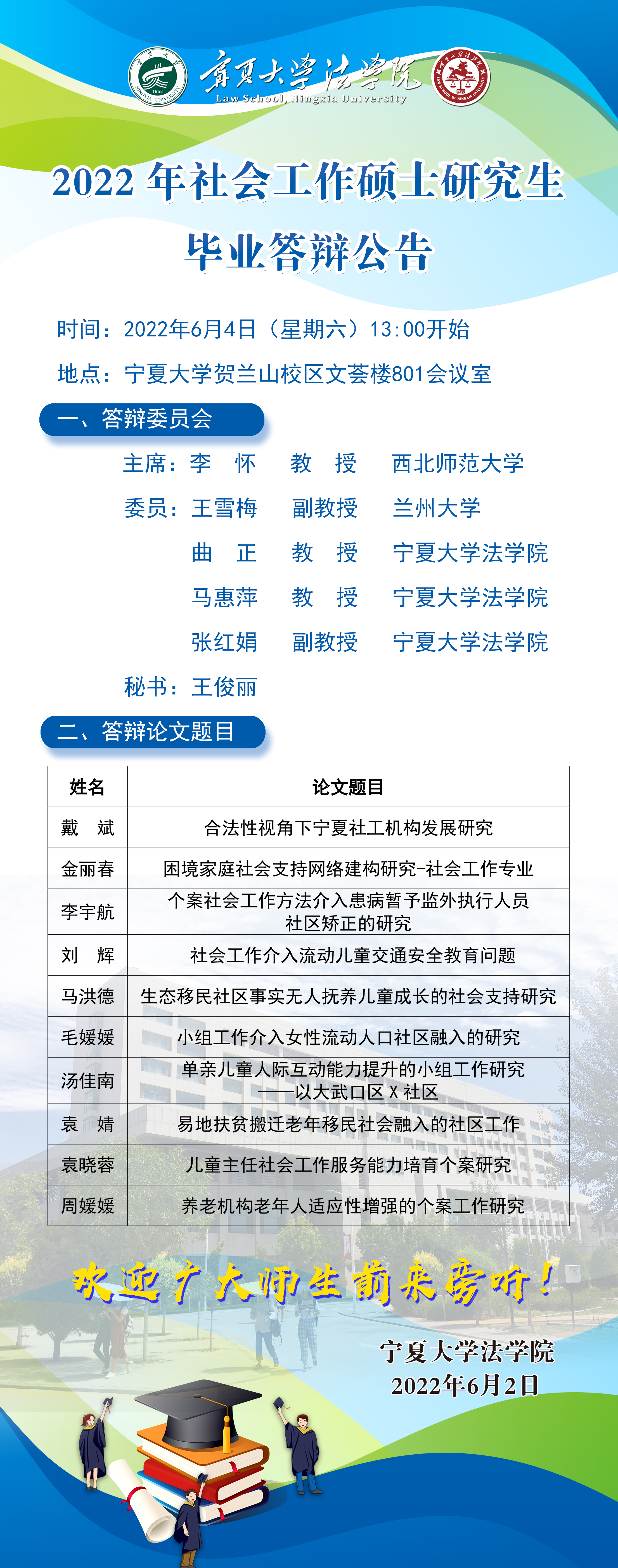 体育平台官网社会工作(MSW)硕士研究生毕业论文答辩公告