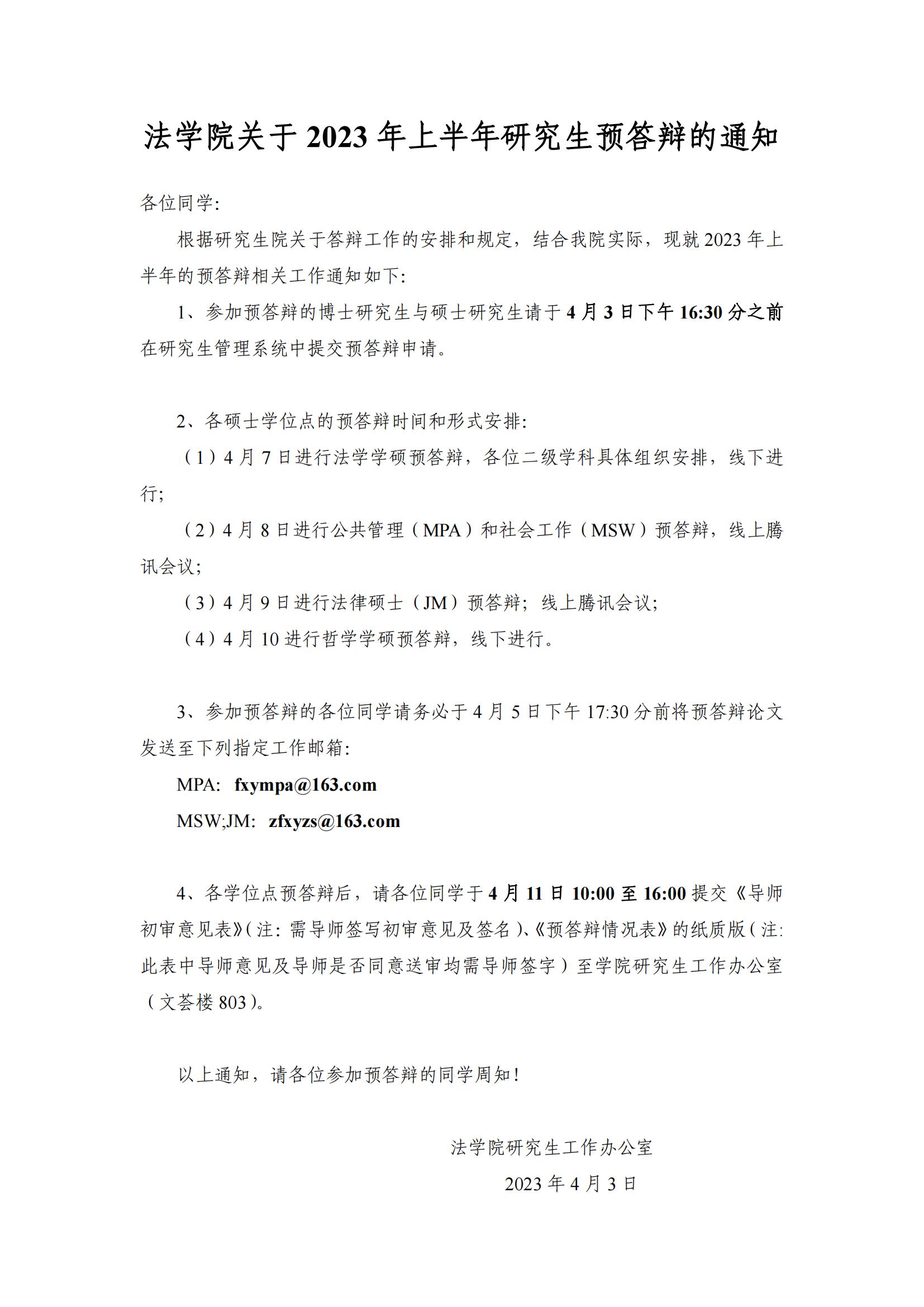 体育平台官网关于2023年上半年研究生预答辩的通知
