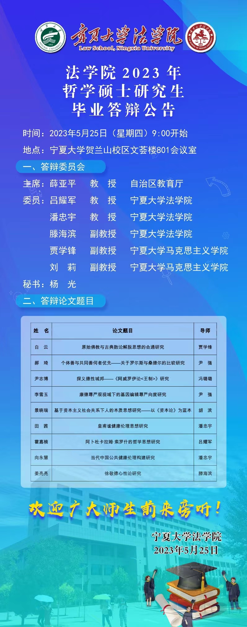 2023年哲学硕士研究生毕业答辩公告