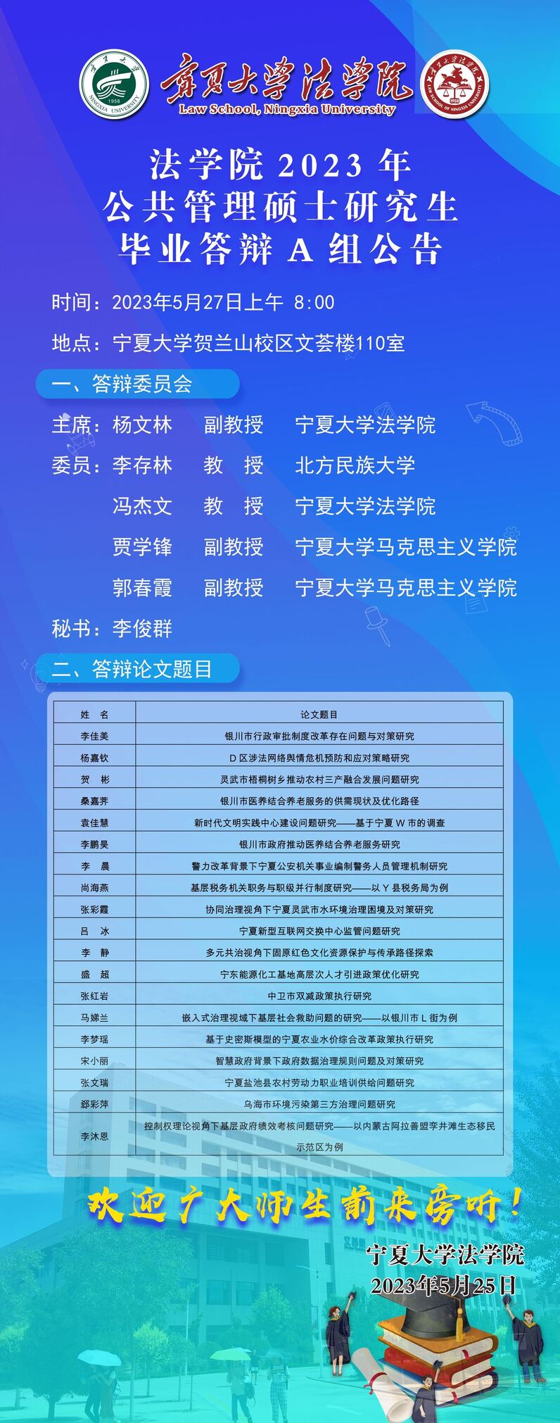 2023年公共管理硕士研究生毕业答辩A组公告