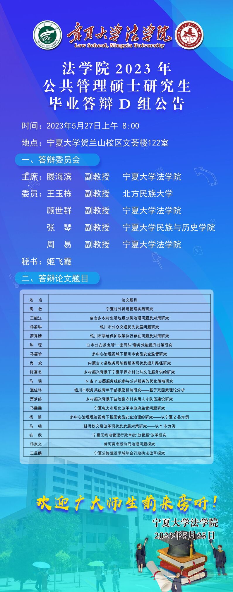 2023年公共管理硕士研究生毕业答辩D组公告