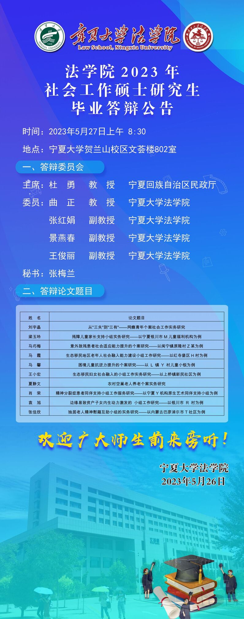 2023年社会工作硕士研究生毕业答辩公告