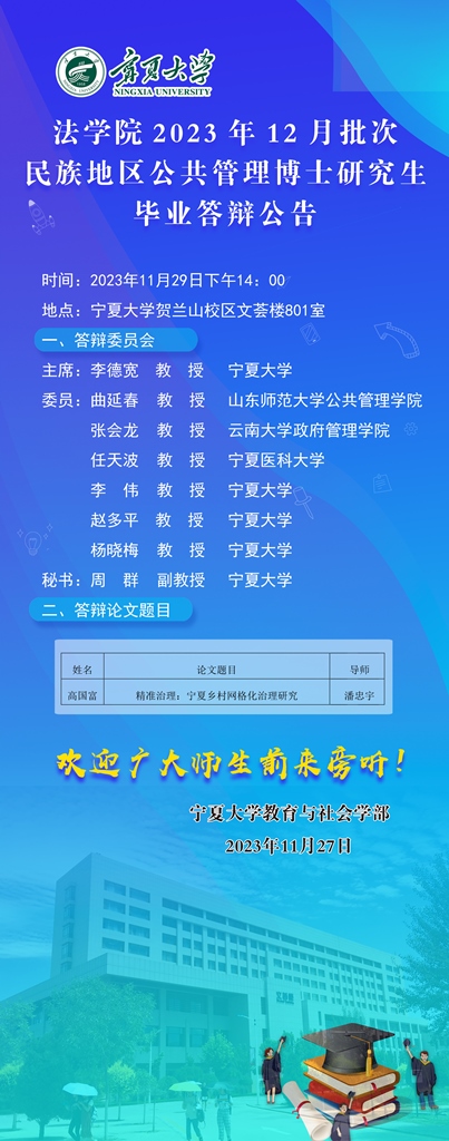 2023下半年民族地区公共管理专业博士毕业答辩公告
