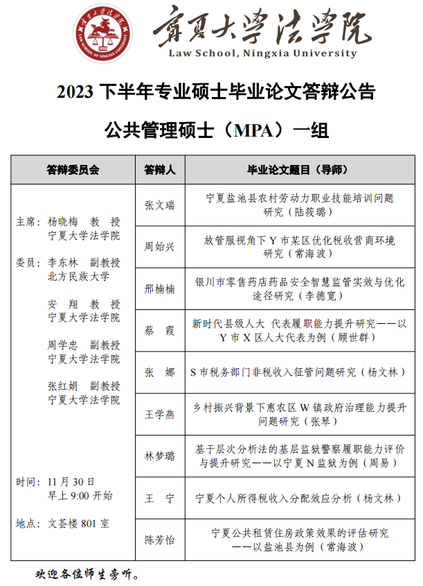 2023下半年公共管理硕士毕业答辩一组公告
