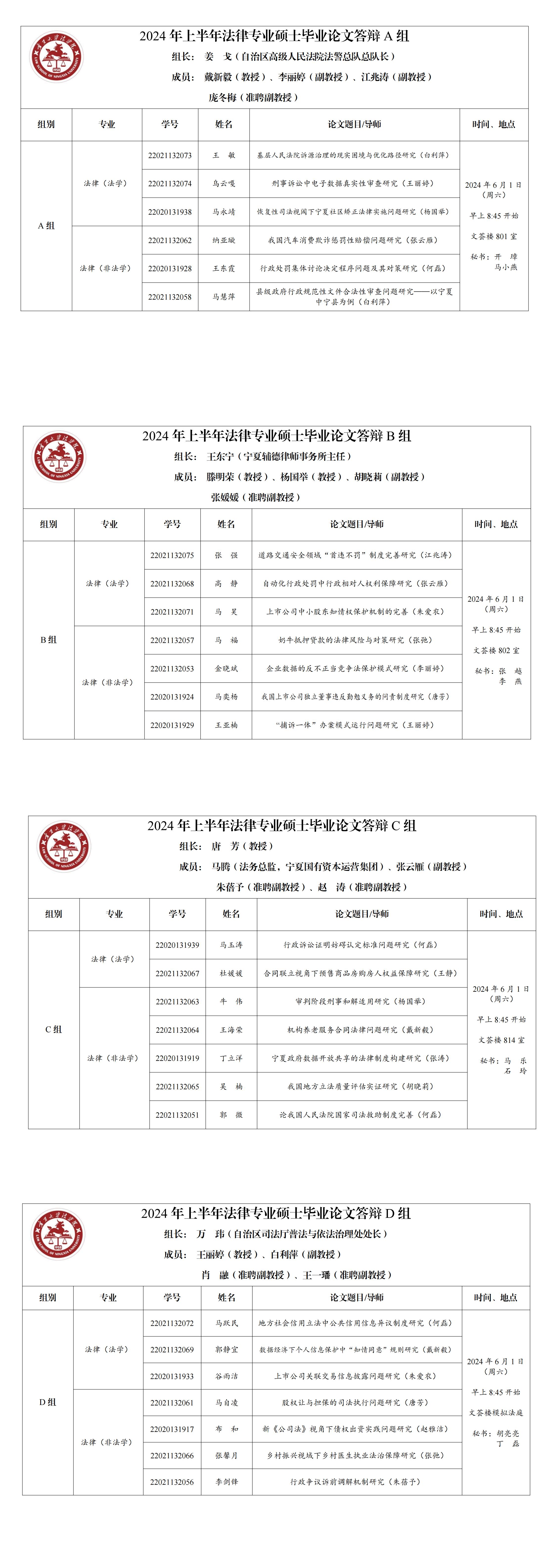 2024上半年法律硕士毕业答辩公告