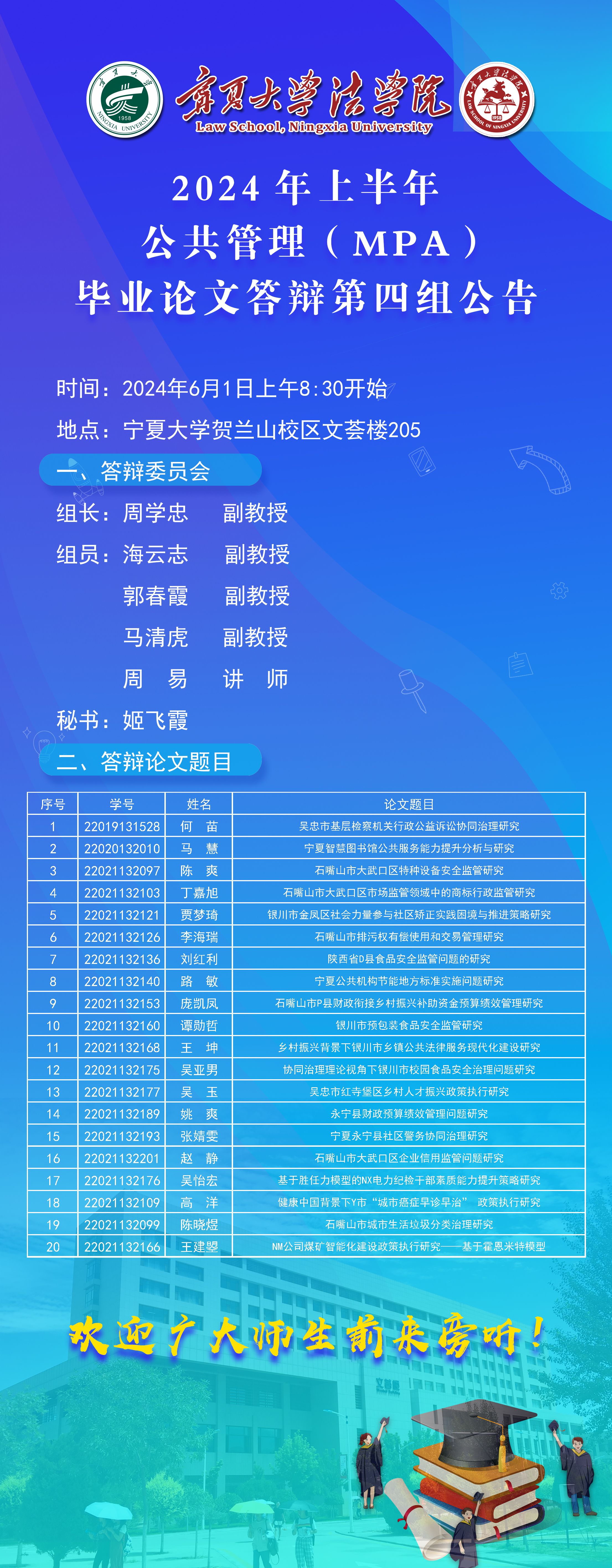2024上半年公共管理硕士(MPA)毕业论文答辩第四组公告